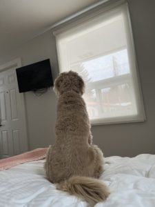 I don’t drive. The town didn’t seem big enough to have Uber. Even if they had Uber Tractor or Uber Snowmobile and I somehow managed to get to the scene of the incident, what then? How would I get back home to Toronto? I’m not strong enough to put our luggage in the car. I’m not even strong enough to walk the dog, who was reading this situation and staring out the window desperately trying to manifest The Banker’s return.