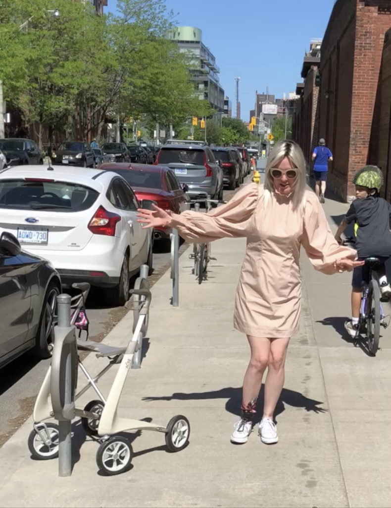 Avant de commencer l’essai, j’ai dû faire une marche minutée sur 25 pieds. Ça m’a pris 24 secondes avec ma canne et 12 secondes avec mon déambulateur. Puis j’ai passé des heures à faire le deuil de mes capacités, tout en essayant d’être reconnaissante pour des jambes qui ne seront jamais plus efficaces que maintenant.